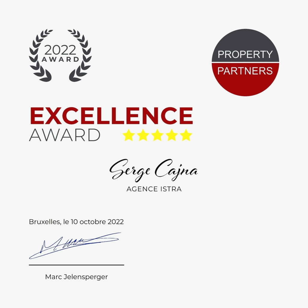 Je suis fier de vous annoncer que l'agence Istra a reçu à Bruxelles le prix « Excellence Award » 2022 lors de la convention annuelle Property Partners.