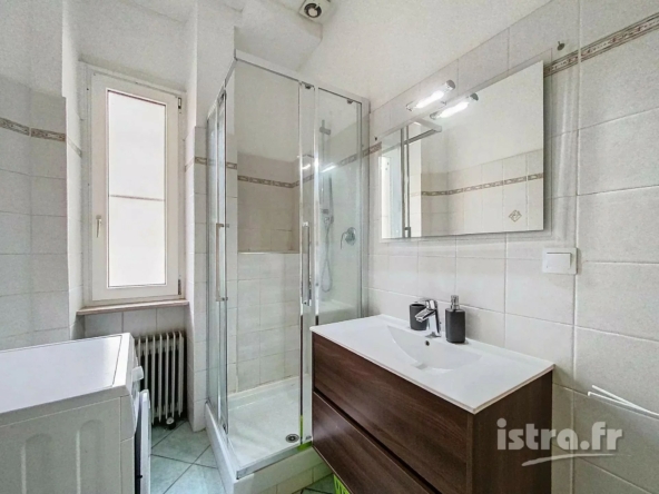 - Un studio lumineux de 31,53 m², exposé plein sud, comprenant un séjour confortable, une cuisine équipée ouverte et une salle de douche avec WC sanibroyeur.
