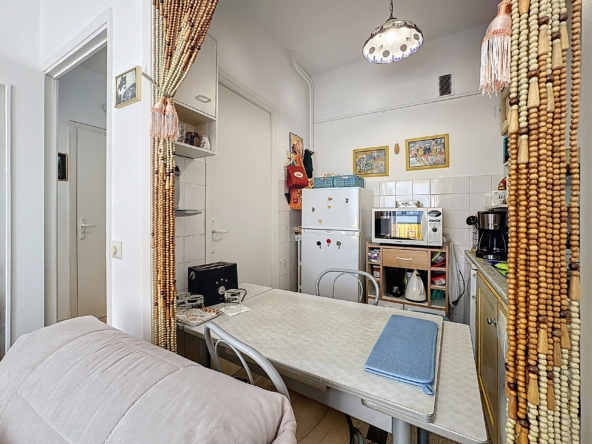 L’appartement est entretenu, mais il mérite une modernisation. En effet, la cuisine et la salle de bains datent un peu (elles ont probablement connu l’époque des cassettes audio … 🎶), mais c’est aussi l’occasion rêvée de les remettre à votre goût ! Quelques travaux et ce nid deviendra un pied-à-terre stylé à deux pas de la mer 🌊. Une cave en sous-sol complète ce bien.