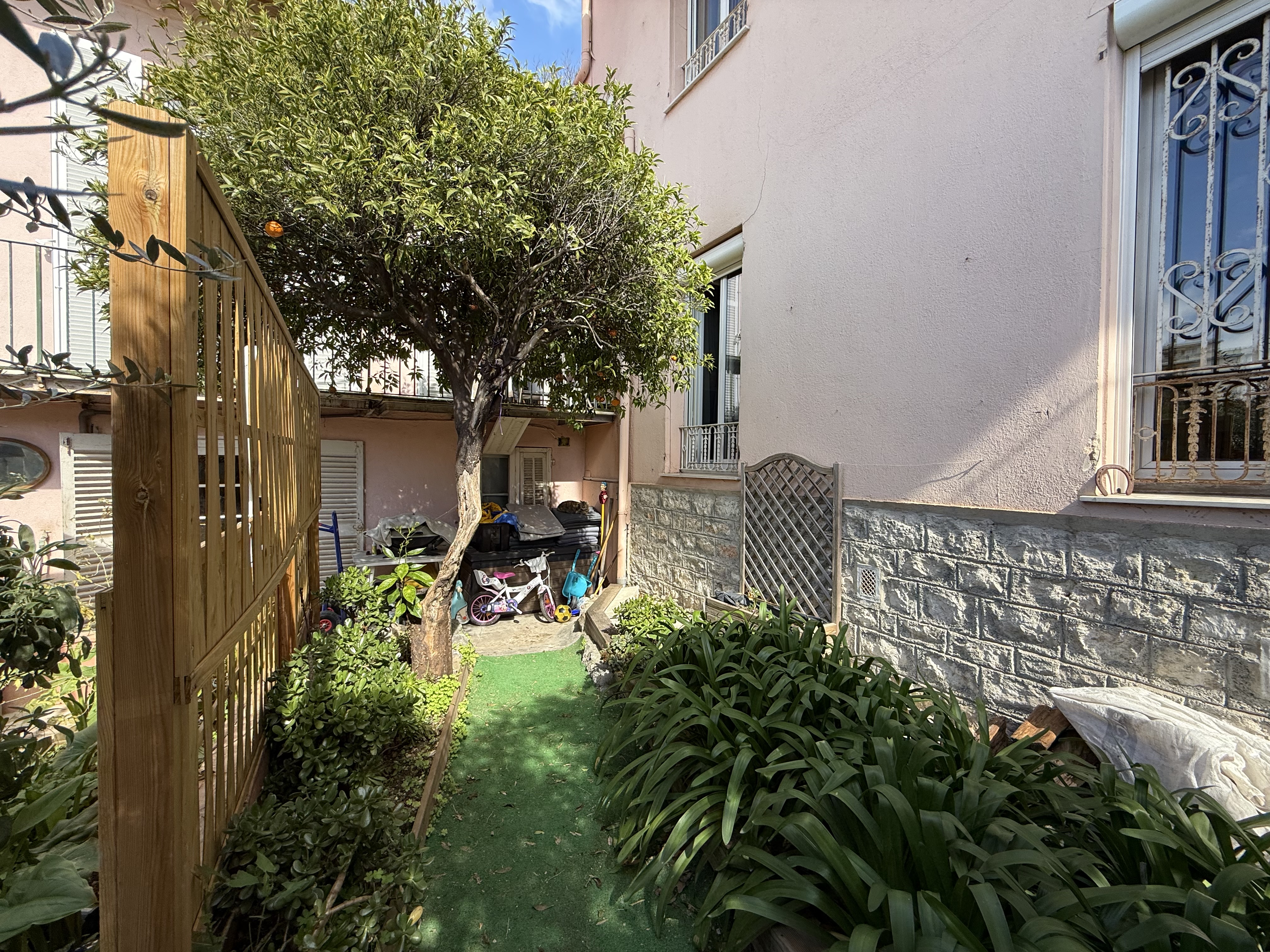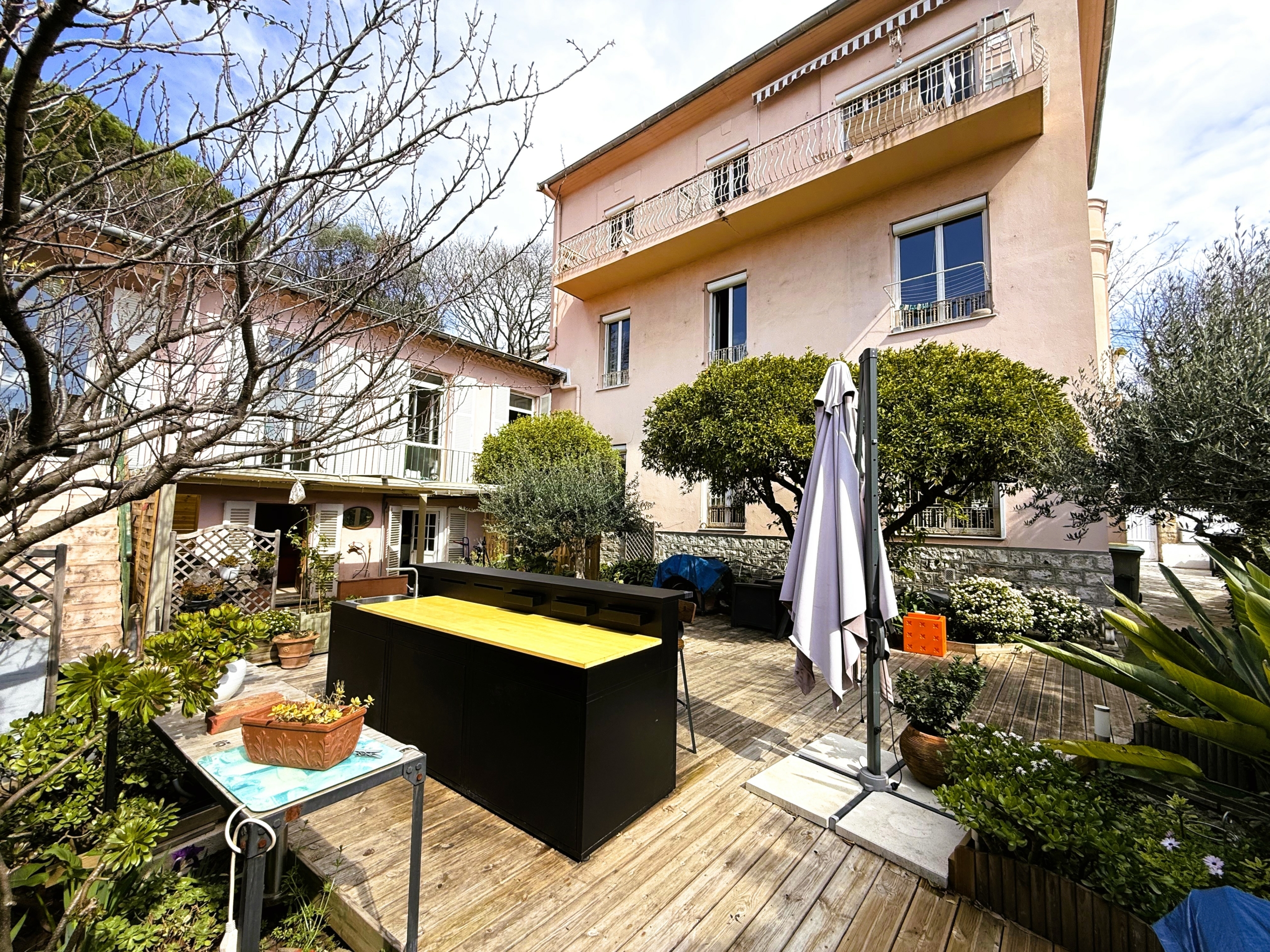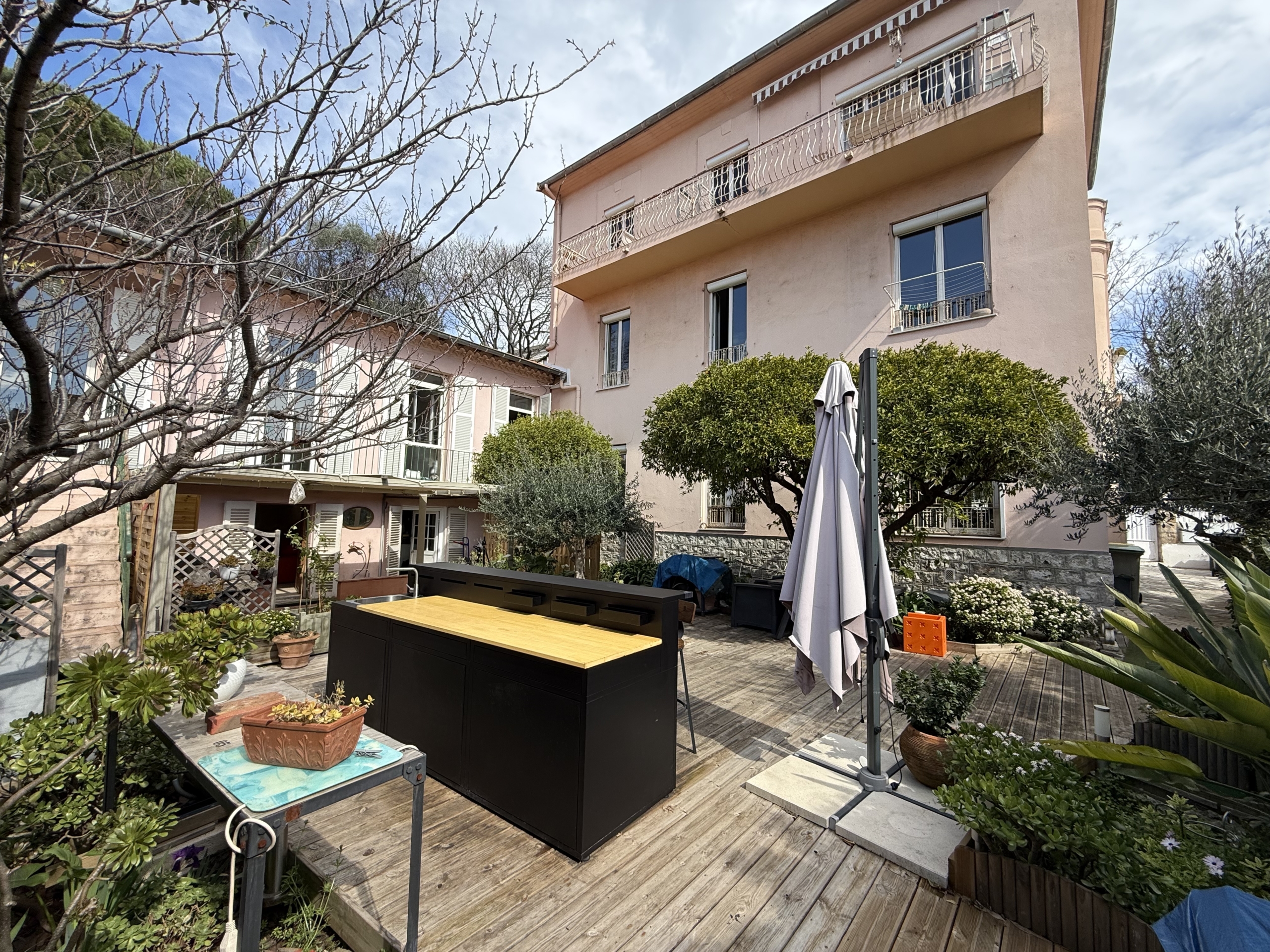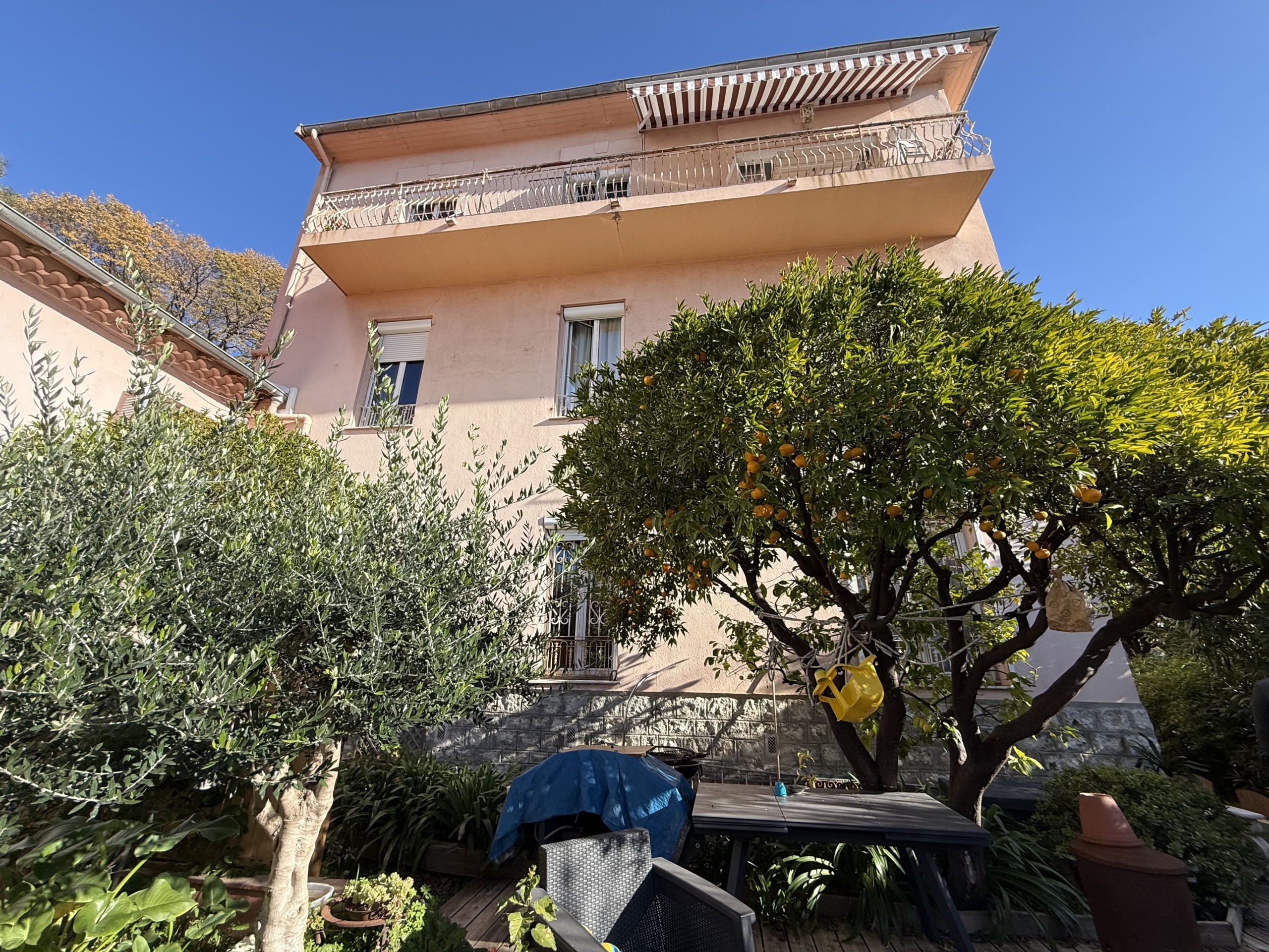 - La seconde maison (plus ancienne) a une surface de 201.83 m², comprenant un vaste espace d’habitation modulable (160.81m²) sur deux niveaux avec dépendances et jardin privatif 🌳, ainsi qu’un agréable 2 pièces 41.02m² plus balcon.