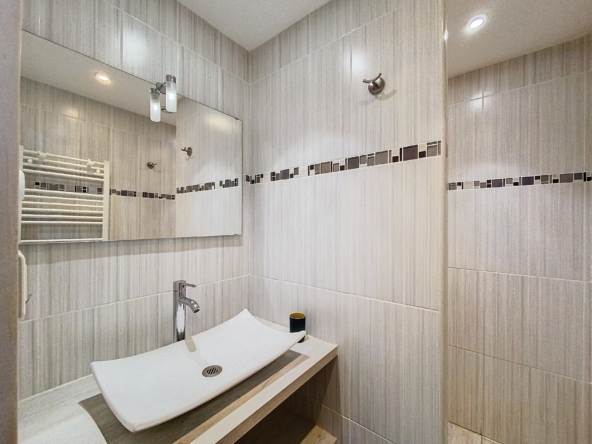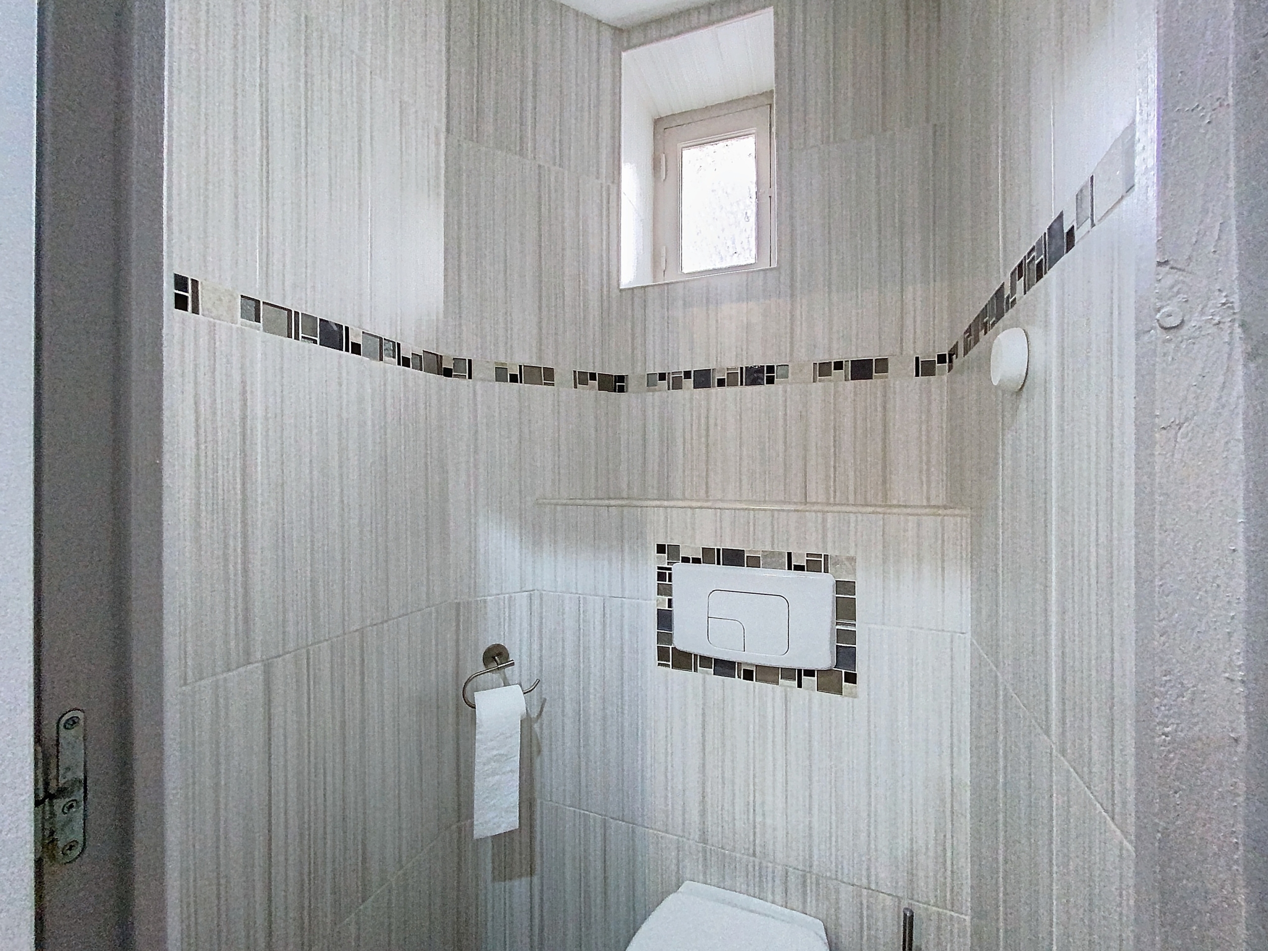 • Une salle de douche à l’italienne, moderne et élégante. S’y ajoute un WC séparé avec fenêtre.