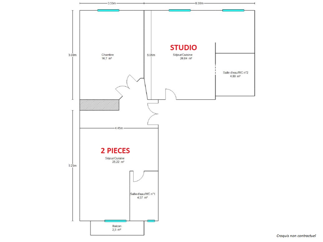 Double Unité HabitableUn seul lot de copropriété déjà divisé en deux appartements distincts et indépendants.