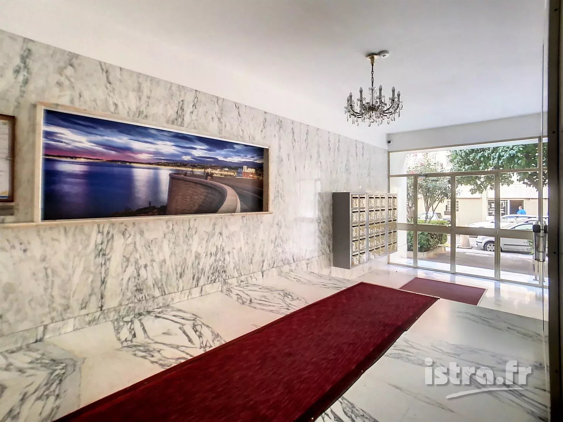 Nice avenue des Orangers > 2 pièces Rometti avec balcon EXCLUSIVITE AGENCE ISTRA Idéal premier achat. 2 pièces avec balcon dans un bel immeuble Rometti. Cet appartement de 43.03m² comprend une entrée, un dressing, une salle de bains avec wc, une chambre, un séjour climatisé avec coin cuisine, et un balcon exposé ouest. La jolie entrée de l’immeuble est située avenue des Orangers et l’appartement donne sur le boulevard François Grosso. Il est en 1er étage avec ascenseur et dispose d’une cave en sous-sol. Les fenêtres sont en double vitrage, le chauffage et l’eau sont collectifs. Le bien a été entretenu et il faut simplement prévoir une remise aux normes de l’installation électrique et un rafraîchissement de la déco. Les ‘Résidences Nathalia’ sont situées à l’angle de l’avenue des Orangers et du boulevard François Grosso, dans le quartier des Fleurs. Il s’agit d’un ensemble immobilier qui a été réalisé en 1971 par Rometti. Bien en copropriété (55 lots dont 40 lots principaux). Provisions sur charges : 115 euros par mois. Taxe foncière annuelle 844 euros. Honoraires d’agence à charge du vendeur. Vendez rapidement votre appartement à Nice. Demandez une estimation gratuite !