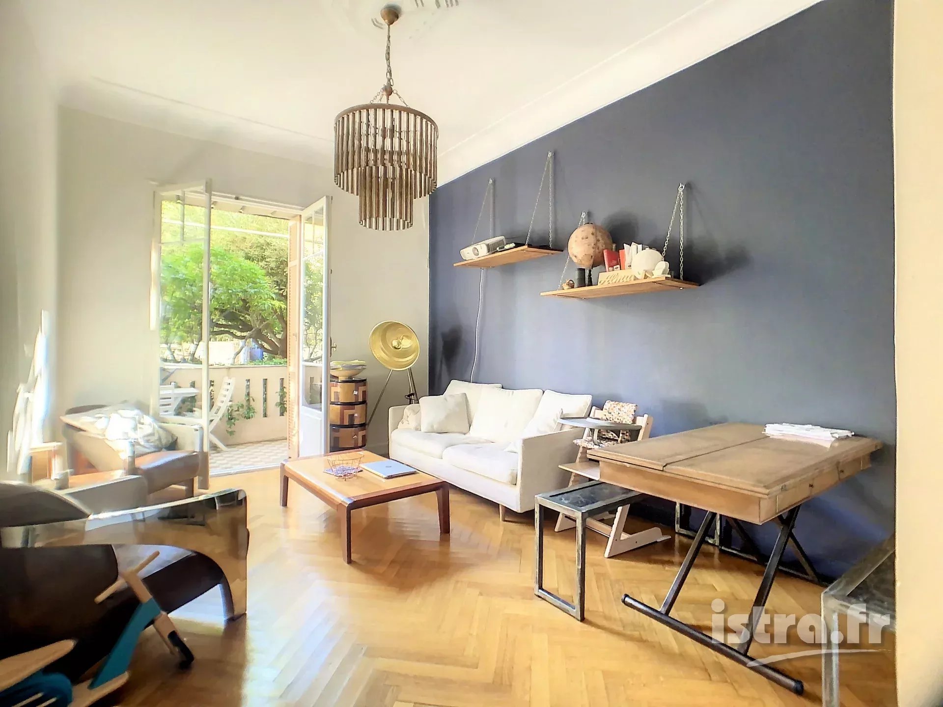 Nice François Grosso > 3 pièces avec beau jardin sud VENDU PAR AGENCE ISTRA Un jardin en ville !! Je vous propose aujourd’hui un appartement avec un beau jardin dans le quartier François Grosso. Situé dans un bel immeuble art-déco, cet appartement a une surface de 57,26m² et dispose d’une double exposition. Côté sud : une belle chambre parquetée avec balconnet, un salon ouvrant sur un balcon et, en contrebas, sur une terrasse-jardin à usage privatif de 55,76m² avec un sol en bois exotique. Côté nord : une petite pièce (chambre d’enfant ou bureau) au calme sur cour. L’appartement bénéficie d’une grande entrée avec sol en carreaux de ciment d’époque, un dégagement avec placard, une cuisine équipée semi-ouverte sur le salon, et une petite salle d’eau (à refaire) avec wc. De hauts plafonds et des moulures complètent ce descriptif. Le chauffage et l’eau sont collectifs. En outre, le jardin dispose d’une entrée indépendante, idéale pour rentrer un 2 roues ou une poussette … L’immeuble a été réalisé en 1934 par l’architecte René Livieri, son emplacement est proche du quartier Tzarewitch, ainsi que de plusieurs établissements scolaires et du parc naturel Estienne d’Orves … Il y a également un petit supermarché à proximité. Bien en copropriété (27 lots principaux). Provisions sur charges 176 euros par mois. Taxe foncière annuelle 973 euros. Honoraires d’agence à charge du vendeur. Vendez rapidement votre appartement à Nice. Demandez une estimation gratuite !