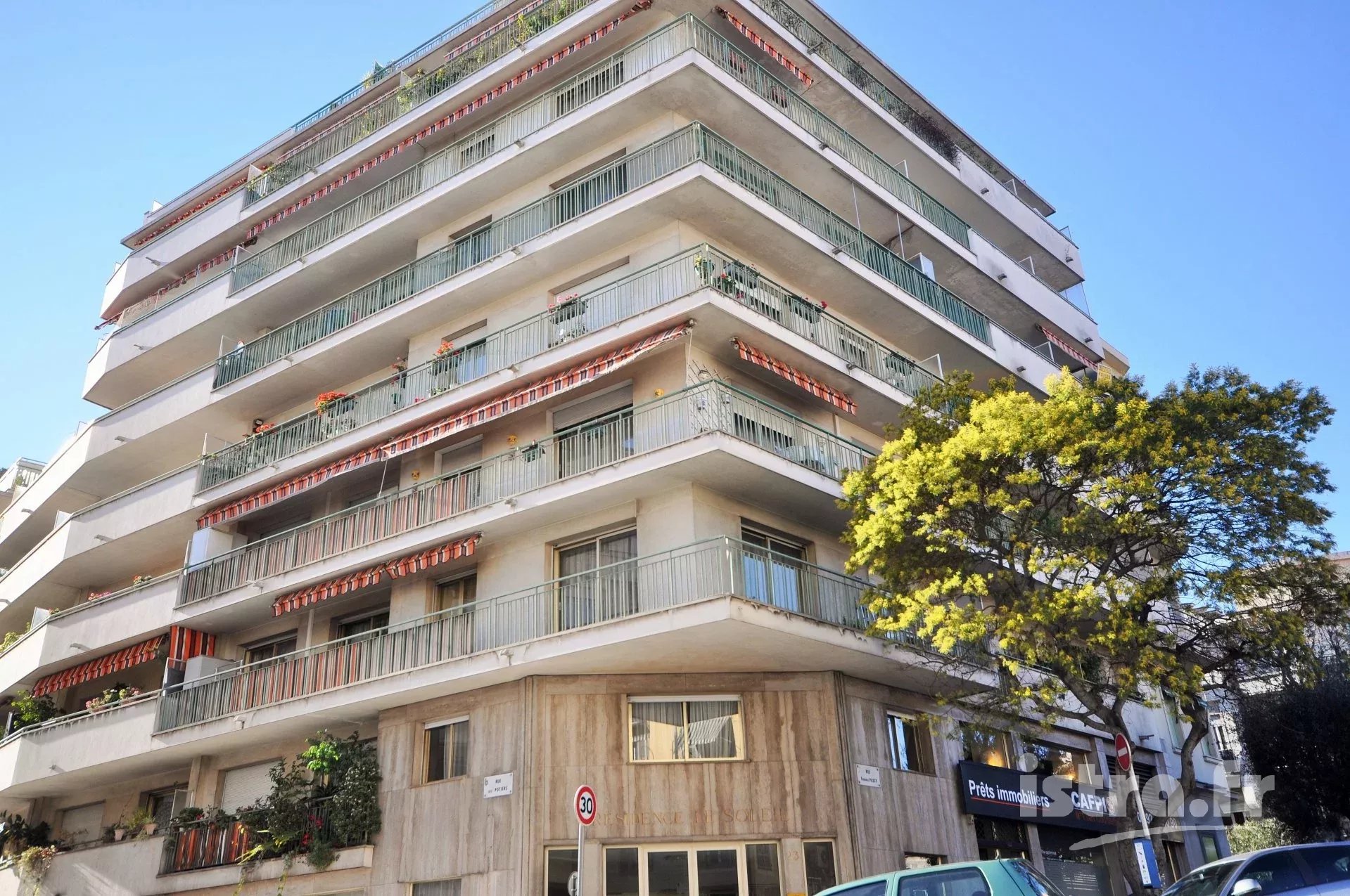 Nice Frédéric Passy Le Soleil > Vaste 2 pièces Rometti Nice Frédéric Passy : vaste 2 pièces dans un bel immeuble Rometti. Surface de 66m², double exposition nord / sud, balcon et terrasse, travaux à prévoir, 3ème étage avec ascenseur, gardienne. Cet appartement comprend une grande entrée avec rangement, un salon en marbre ouvrant sur la terrasse, une salle de bains, un wc séparé, une cuisine indépendante, une chambre donnant sur le balcon côté sud. Les prestations sont d’origine et nécessitent une modernisation; chauffage et eau chaude sont collectifs. Il y a également une cave. Le quartier est proche des commerces, écoles, collèges et lycées, mais aussi de la Faculté de Droit, de l’accès à la voie rapide, d’un superbe parc naturel et de la gare Sncf. Bien en copropriété, lot n°141 (total 169 lots) Charges annuelles : 1962 euros Taxe foncière annuelle : 1074 euros DPE classe énergie : C Vous avez un projet immobilier à Nice Frédéric Passy ? Vous envisagez d’acquérir ou de vendre un appartement à Nice ? Contactez l’agence Istra, votre conseiller immobilier à Nice depuis 1993. Tel. 04.93.97.2000 istra@orange.fr