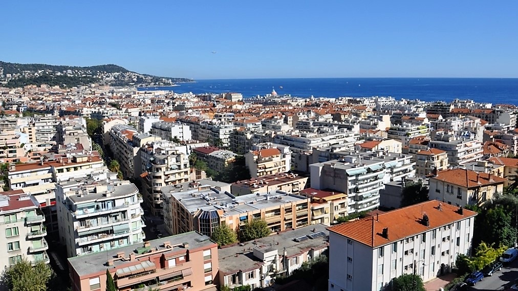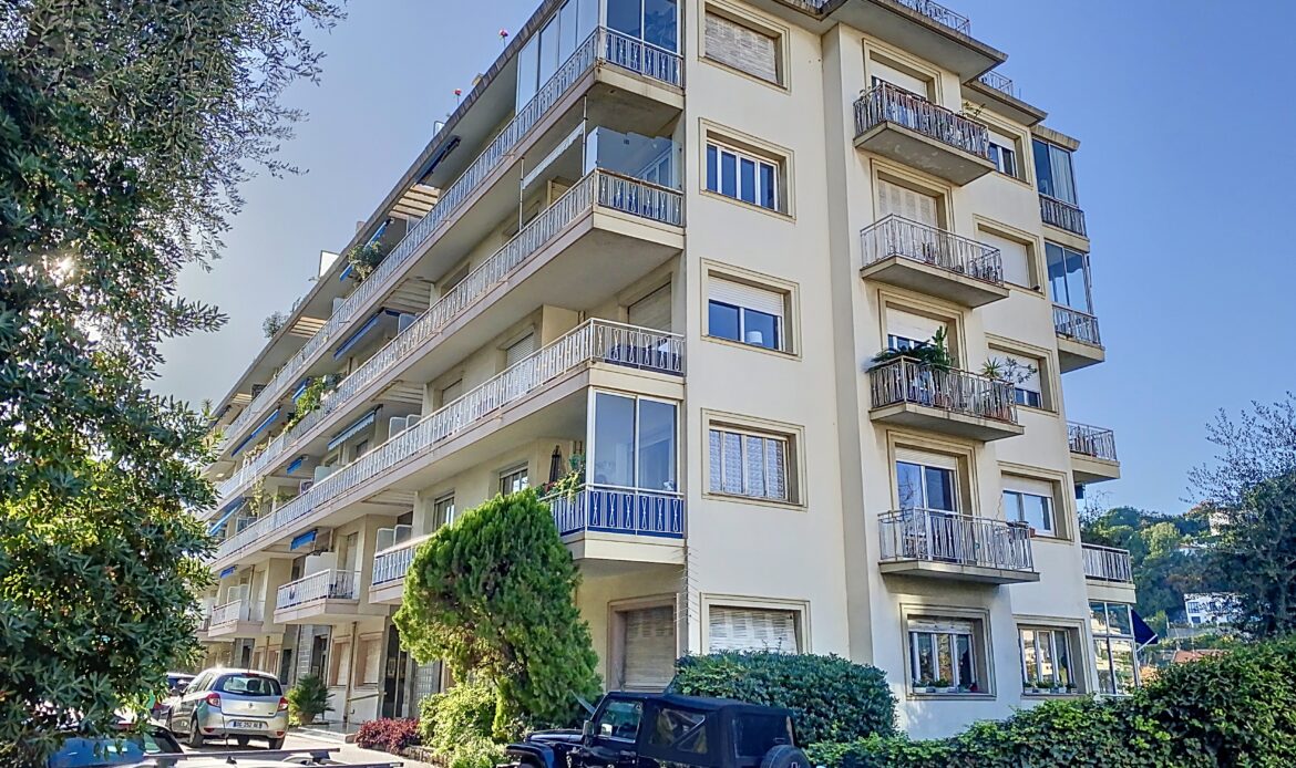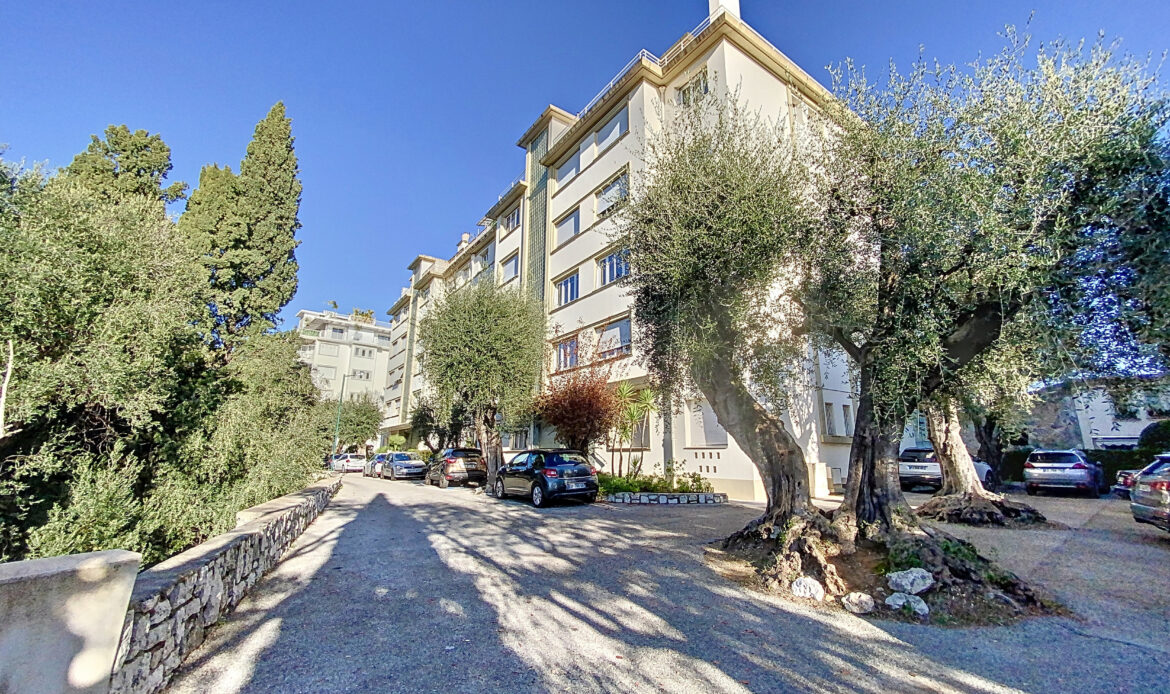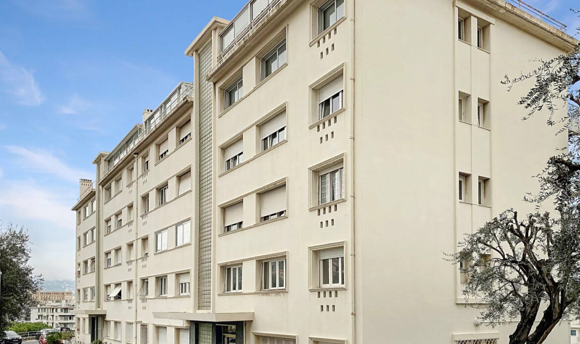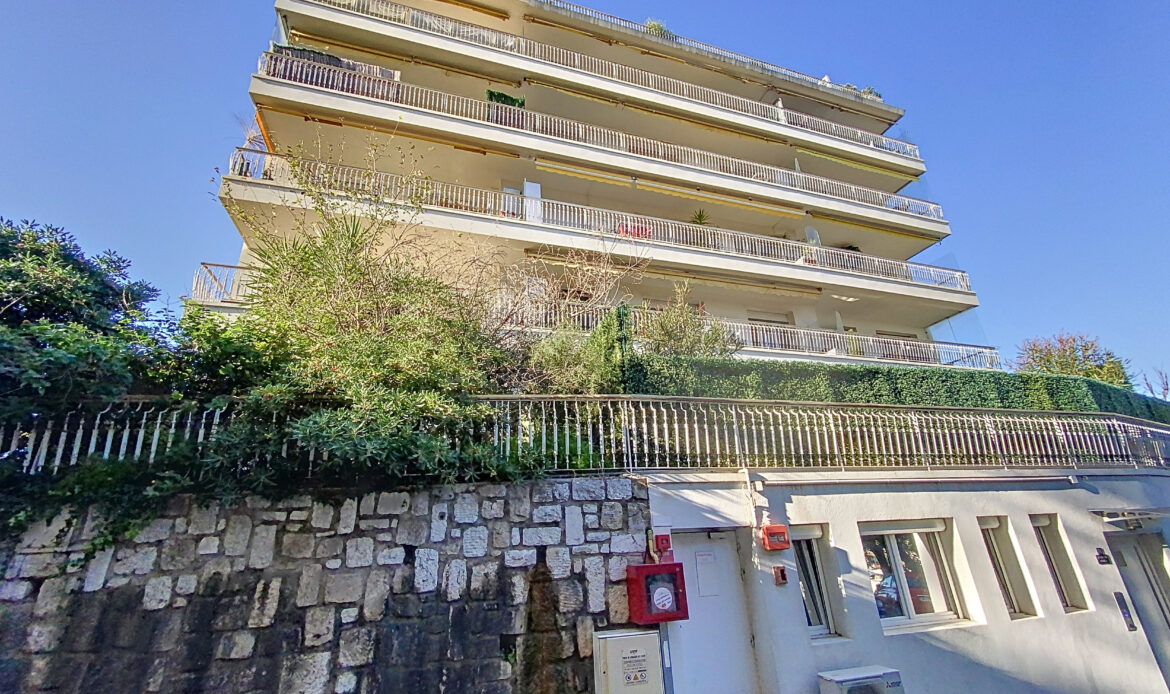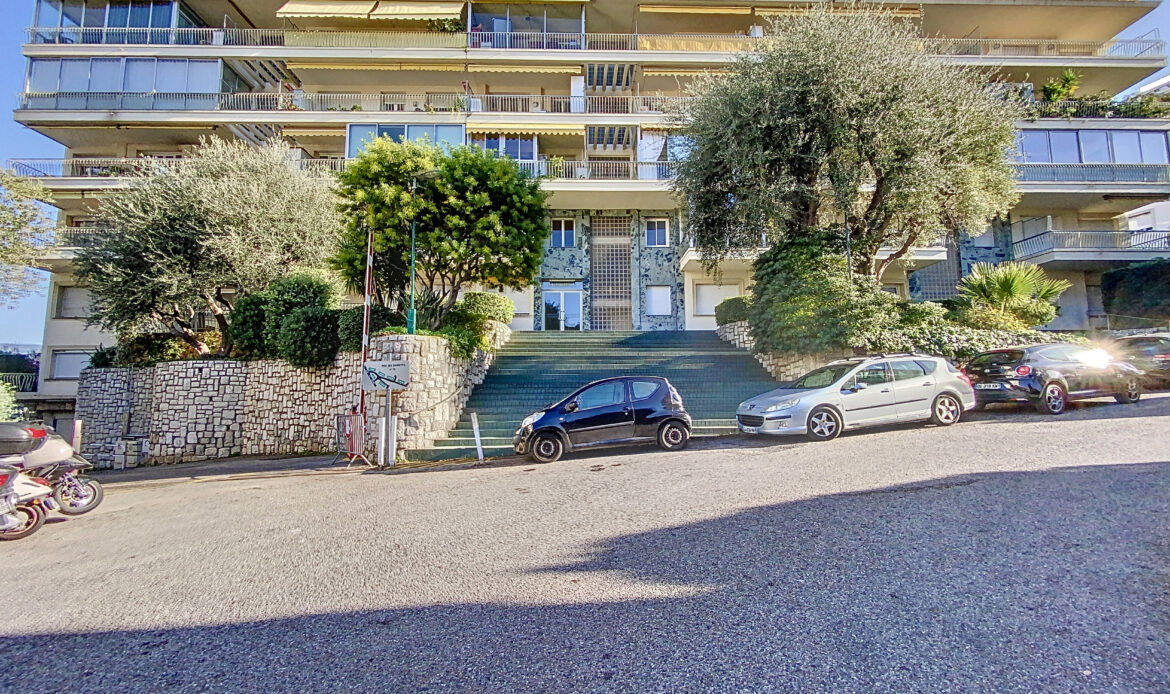 Ce bâtiment, livré aux alentours de 1960, bénéficie d’une jolie vue sur la ville de Nice jusqu’à la mer.