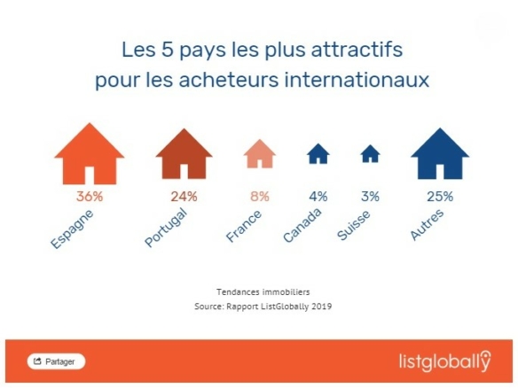 Selon le rapport ListGlobally 2019, la France reste une destination attractive pour les acheteurs étrangers (8% des demandes) de biens immobiliers.