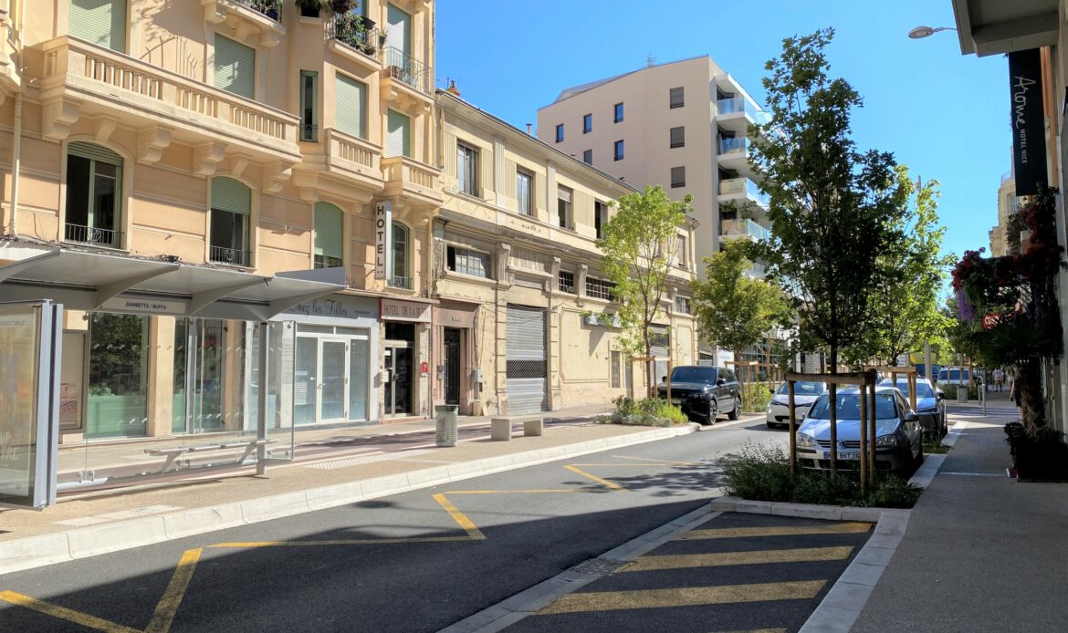 La cité marchande de la Buffa est située dans la rue de la Buffa à Nice, à l’angle avec le boulevard Gambetta.