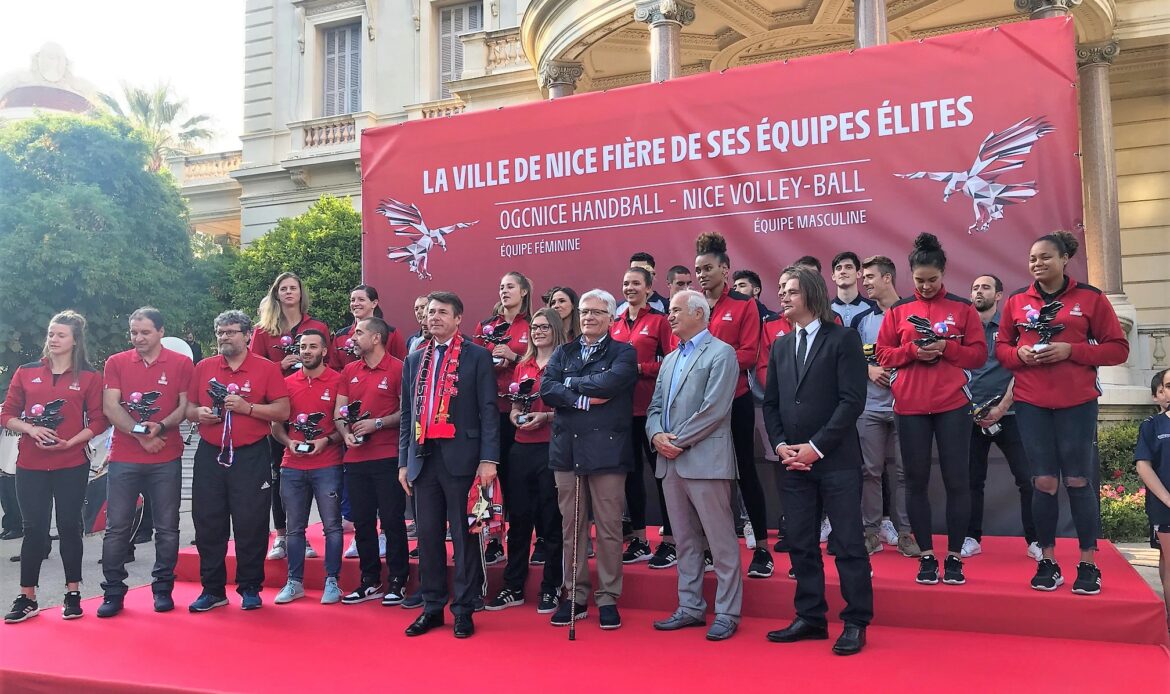 Dans les jardins de la Villa Masséna, en présence d’Alain Griguer, Ange Ferracci et José Cobos, le Maire de Nice, Christian Estrosi, a récompensé l’équipe féminine de l’OGC Nice Handball et l’équipe masculine du Nice Volley-ball.