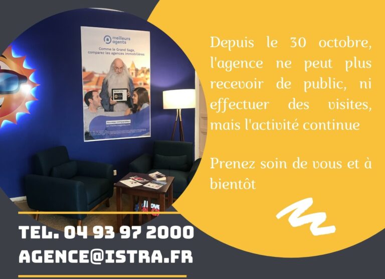 Par contre, l’activité se poursuit en ligne. L’agence Istra reste à votre disposition par téléphone et email, ainsi que sur tous les réseaux sociaux. En attendant de pouvoir effectuer des visites, l’agence Istra vous propose des visites virtuelles.