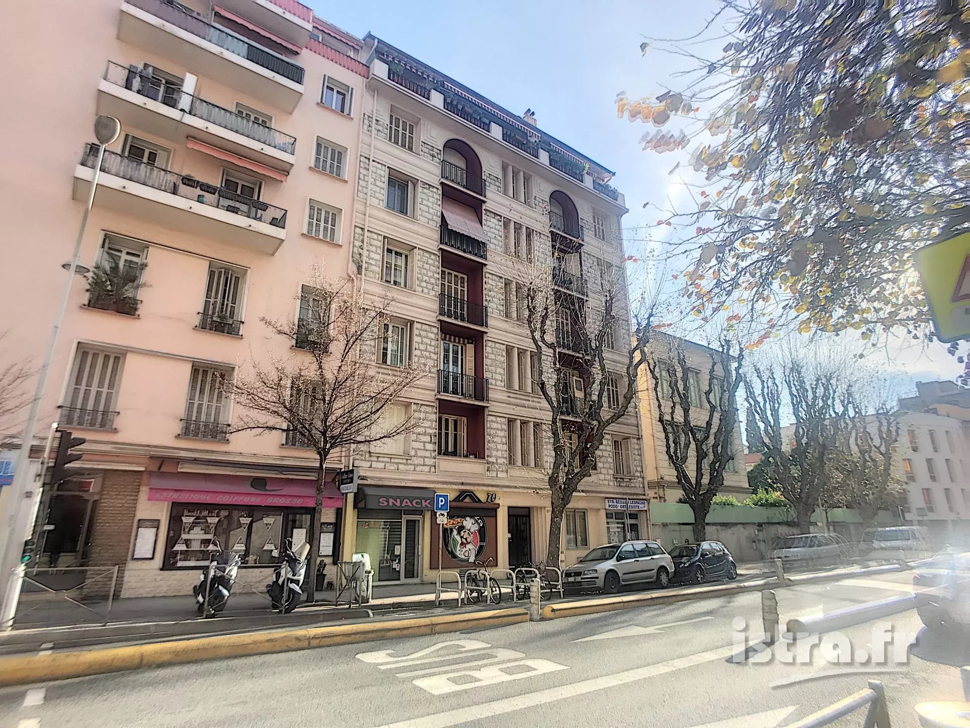 Nice François Grosso > 2 pièces traversant avec balcon A proximité des plages, écoles et commerces. Appartement F2 traversant avec balcon dans un immeuble des années 30. Ce bien a une surface Loi Carrez de 49.74m². Il comprend une entrée, un salon exposé Ouest, une chambre sur cour, une salle de douche avec fenêtre, un toilette séparé avec lave-mains et fenêtre, une cuisine aménagée ouvrant sur un balcon de 1.70m² orienté Est. L’appartement a conservé le charme de l’ancien : granito dans l’entrée, parquet dans les 2 pièces principales, hauts plafonds. Il se situe au 3ème étage avec ascenseur dans un immeuble de 6 étages. Il y a également une cave en sous-sol. Le chauffage et l’eau froide sont collectifs, l’eau chaude est individuelle électrique. Tous les diagnostics ont été réalisés et sont à votre disposition. La copropriété est tranquille et les habitants s’y plaisent car il y restent très longtemps, aussi bien les locataires que les propriétaires. En sortant de chez vous, vous avez la plage à 200 mètres, des commerces et supermarchés, une école, les bus et bientôt le tramway. Bien soumis au statut de la copropriété, total de 20 lots principaux. Provisions sur charges mensuelles : 155 par mois. Taxe foncière : 1005 euros. DPE classe énergie : D (202). Honoraires d’agence à charge du vendeur. Vous avez un projet immobilier à Nice François Grosso ? Vous envisagez d’acquérir ou de vendre un appartement à Nice ? Contactez l’agence Istra, votre conseiller immobilier à Nice depuis 1993. Tel. 04.93.97.2000 istra@orange.fr