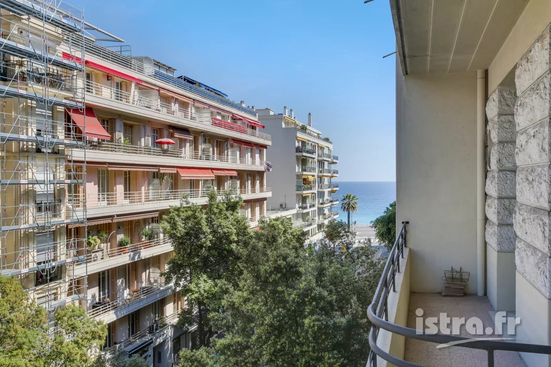 Nice Gambetta Promenade > vaste 4/5 pièces avec balcons A seulement quelques mètres du bord de mer, vaste 4/5 pièces de 128,69m² dans un bel immeuble d’inspiration art-déco. Dans le bas du boulevard Gambetta, sur le tracé de la récente piste cyclable, ce bien immobilier en étage élevé vous offre de beaux volumes : une grande entrée desservant toutes les pièces, de nombreux rangements, un double séjour de 34.32m² en angle, 3 belles chambres entre 13 et 16m², 2 salles de douche, 2 wc dont 1 indépendant, une cuisine aménagée avec buanderie attenante, un balcon donnant sur la rue de France, et un second balcon exposé Est avec vue mer latérale. L’appartement est en 4ème étage avec ascenseur et monte-charge. Fenêtres en double vitrage, climatisation, eau et chauffage collectifs, et une cave en sous-sol. L’immeuble ‘Comté de Nice’ à été construit en 1941 par la Société civile immobilière Niçoise. L’emplacement est proche du centre, des commerces et restaurants, et des plages. Sélectionné par l’agence Istra, agence immobilière à Nice depuis 1993. Estimation gratuite ! Bien soumis au statut de la copropriété (total de 38 lots). Provisions sur charges : 741.01 euros par trimestre. Syndic Cabinet Crouzet & Breil. Assurance immeuble CFDP. Taxe foncière 1617 euros. Honoraires d’agence à charge du vendeur.
