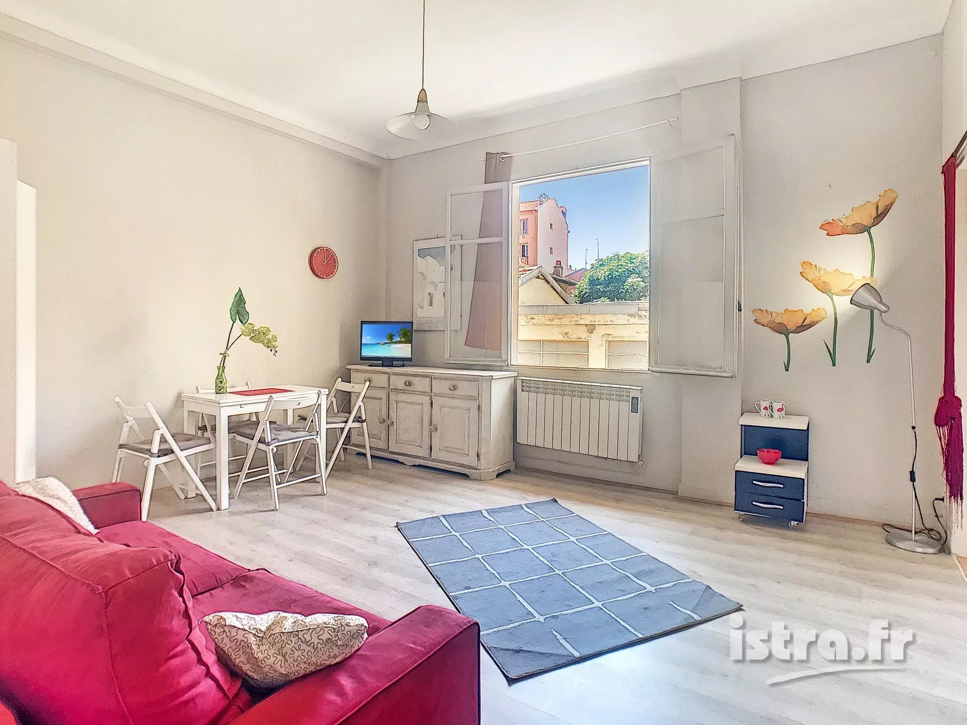 Nice Grosso Tzarewitch > Studio idéal placement VENDU PAR AGENCE ISTRA Grand studio de 31.18m² dans le quartier François Grosso / Tzarewitch à Nice. L’appartement est idéal pour un placement locatif, il a toujours été loué en meublé, notamment à des étudiants. Il comprend une entrée avec rangement, un toilette séparé, une salle de douche claire, un beau séjour de 19m² exposé sud, et une cuisine aménagée. Le bien dispose d’une belle hauteur sous plafond (possibilité d’installer une mezzanine), il est en rez-de-chaussée surélevé (équivalent 1er étage) et donne sur une impasse. L’immeuble ‘Palais Jussieu’ est une construction de 1952 située dans la rue de Jussieu, à quelques mètres du boulevard François Grosso. Environ 15 minutes à pied de la gare Sncf et du bord de mer. La copropriété comprend 24 lots (dont 16 principaux). Les provisions sur charges sont faibles, seulement 48 euros par mois (tout est individuel). Taxe foncière annuelle 595 euros. Exclusivité agence Istra. Honoraires d’agence à charge du vendeur. Vous avez un projet immobilier à Nice Tzarewitch ? Vous envisagez d’acquérir ou de vendre un appartement à Nice ? Contactez l’agence Istra, votre conseiller immobilier à Nice depuis 1993. Tel. 04.93.97.2000 istra@orange.fr