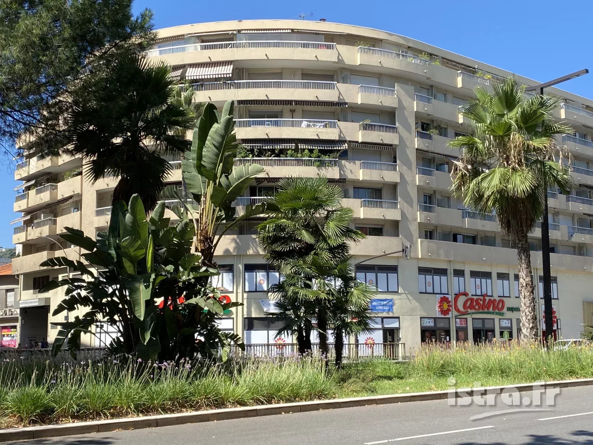 Nice Magnan Promenade > 2 pièces avec terrasse et vue mer Nice Magnan, à deux pas du tramway et de la Promenade des Anglais, vaste appartement F2 avec terrasse et vue mer. En 6ème et avant-dernier étage, ce 2 pièces a une surface Loi Carrez de 59,08m² et s’ouvre sur une terrasse circulaire de 15,45m² avec une vue dégagée jusqu’à la mer. Le bien dispose d’une double exposition et comprend une grande entrée avec dressing, une salle de bains, une belle chambre, un salon de plus de 21m² exposé sud-est, un toilette séparé, et une cuisine indépendante donnant sur un balcon côté cour. L’appartement nécessite des travaux de modernisation et dispose d’un beau potentiel. S’y ajoute un cellier au niveau rez-de-jardin. Le ‘Magnan Promenade’ est un immeuble de standing avec gardien et escalator, il a été réalisé en 1979 à l’angle de l’avenue de Bellet et de l’avenue Gloria, à proximité des commerces, écoles et transports. Il y a un grand supermarché aux pieds de l’immeuble. Les Facultés de Droit et de Lettres sont également toutes proches … Bien en copropriété (total de 266 lots). Provisions sur charges : 209 euros par mois. Taxe foncière annuelle 884 euros. Prix hors honoraires 240.000 euros. Honoraires d’agence à charge de l’acquéreur 4,58% TTC. Prix honoraires inclus 251.000 euros.