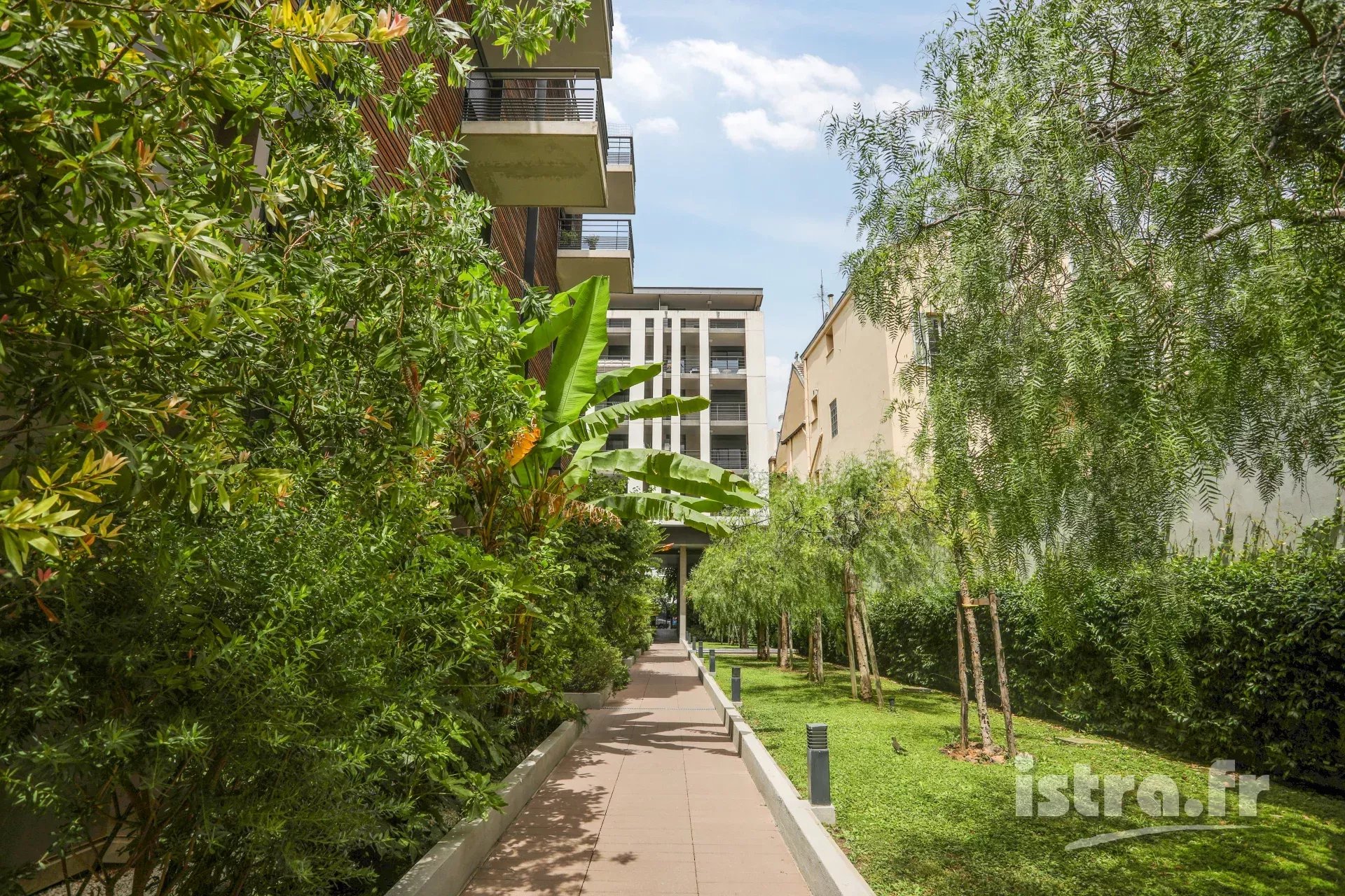 Nice Victor Hugo > 2 pièces moderne avec terrasse sud Nice centre, entre Paul Déroulède et Victor Hugo, F2 récent avec terrasse. Vous avez la possibilité d’y acquérir un bel appartement de en avant-dernier étage. Ce bien a une surface Loi Carrez de 35.02m² et s’ouvre sur une terrasse. Il comprend une entrée, un séjour avec cuisine américaine équipée, une salle de douche, un wc indépendant, et une chambre avec penderie. Les deux pièces donnent sur la terrasse exposée sud de 10.30m². L’appartement bénéficie de volets électriques, d’une bonne isolation acoustique et thermique, ainsi que d’une pompe à chaleur centrale pour le chauffage et la climatisation. Au coeur de Nice, le ’14 Victor Hugo’ a été réalisé en 2010 par le prestigieux cabinet d’architectes Wilmotte & Associés. La résidence dispose d’un jardin complanté d’arbres et de plantes exotiques et d’une double entrée par la rue Paul Déroulède, à côté de l’Institut Jeanne de France, et par le boulevard Victor Hugo, à côté de l’hôtel 5 étoiles Exedra Boscolo. C’est une exclusivité de l’agence Istra, agence immobilière à Nice depuis 1993. Bien en copropriété (148 lots dont 73 appartements). Provisions sur charges : 101 euros par mois. Taxe foncière annuelle 943 euros. Honoraires d’agence à charge du vendeur.